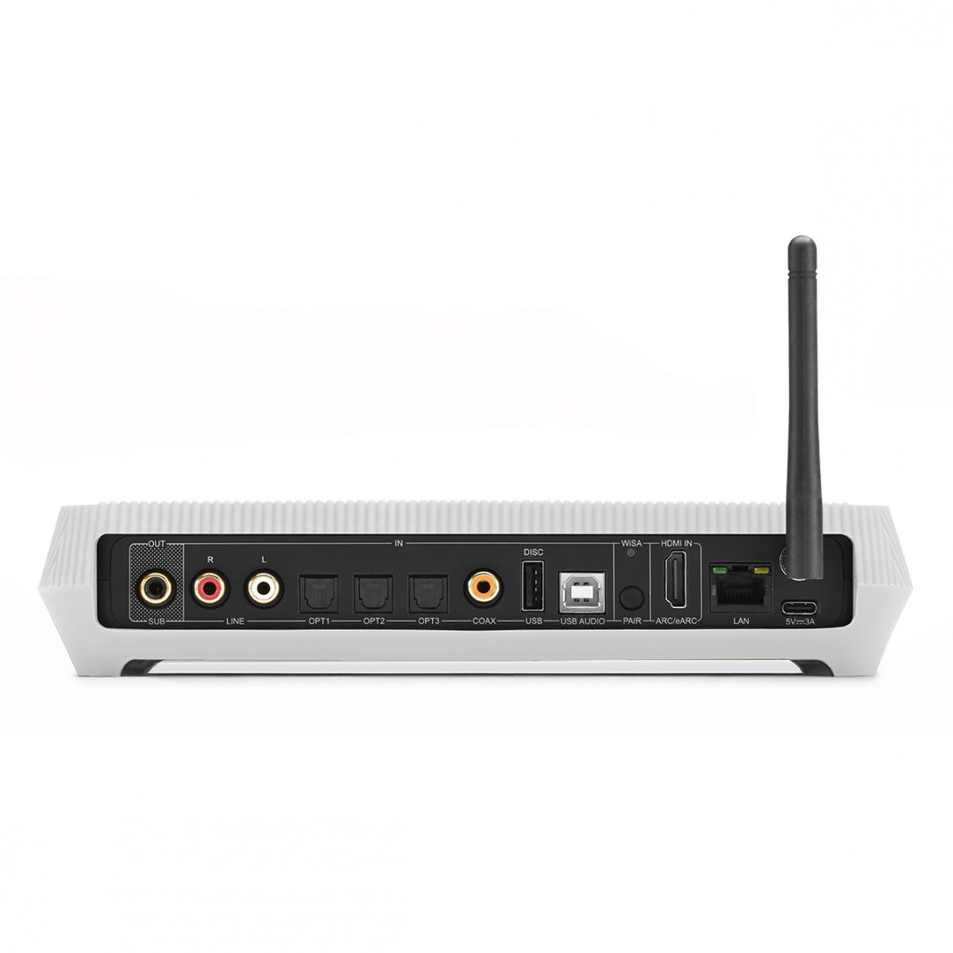 Die Audioübertragung zu den Lautsprechern erfolgt drahtlos über die WiSA-Technologie, die eine stabile Wiedergabe in hoher Auflösung ohne wahrnehmbare Latenz gewährleistet.